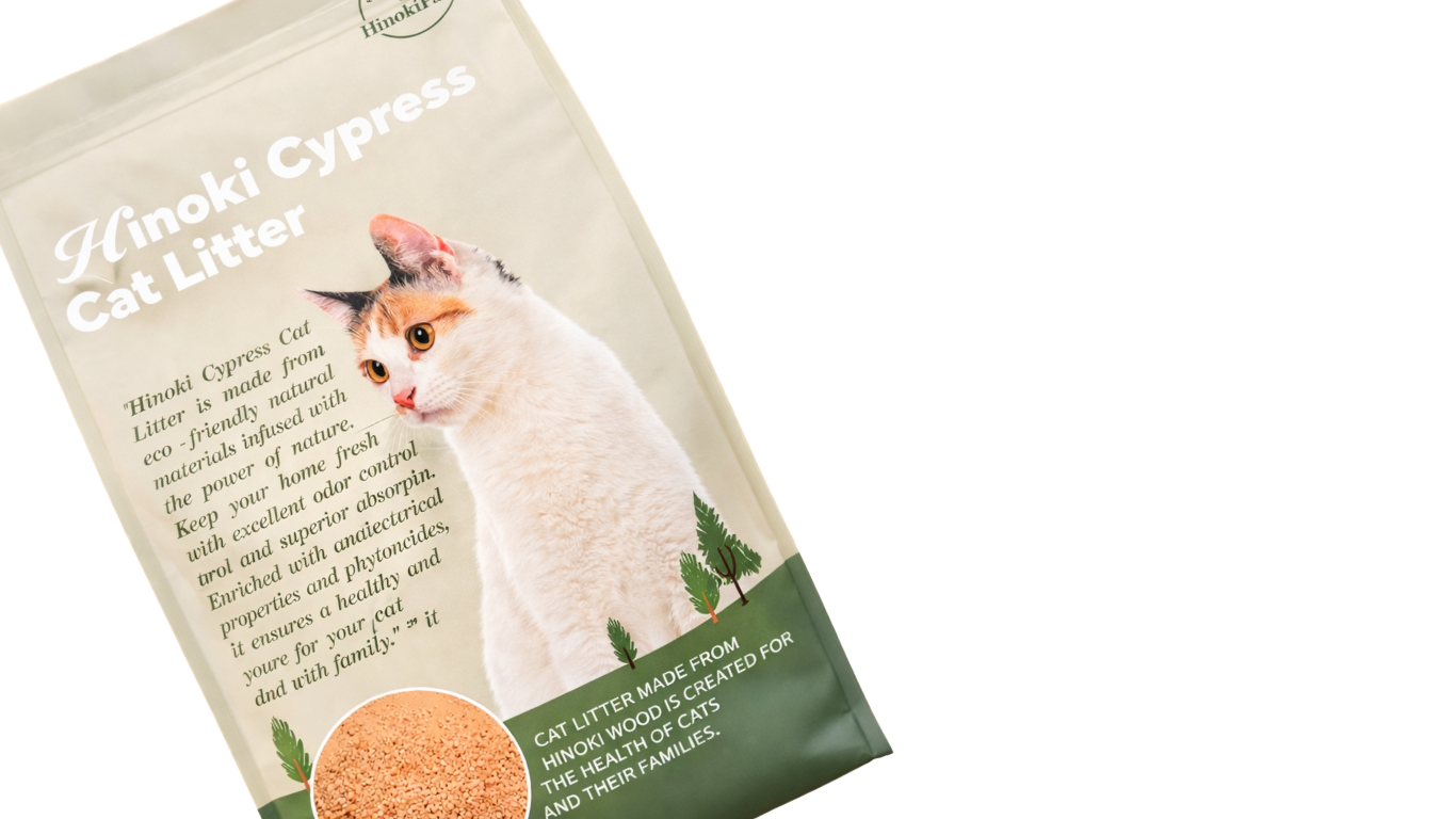 Hinoki Litter Booster is a natural add on to your litter that helps trap urine and stool odors, cuts dust, and keeps scooping cleaner.